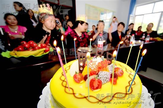 2014年5月7日,新疆哈密市新市区阳光社区干部为社区母亲们献上蛋糕祝福节日。