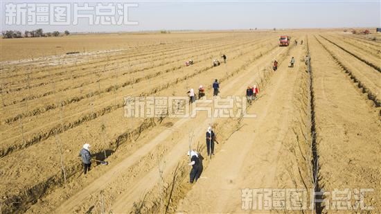 2023年11月9日,在一〇三团蔡家湖镇,职工群众正在植树。