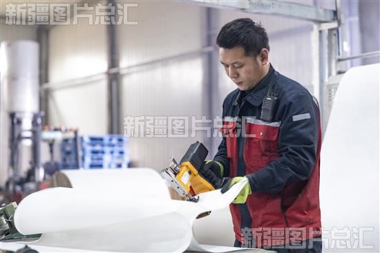 2025年11月18日,位于昌吉国家高新技术产业开发区的新疆东方雨虹建筑材料有限公司生产车间,员工在设备投料处作业。