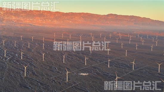 2026年2月3日,航拍兵团第六师北塔山牧场风光电场。