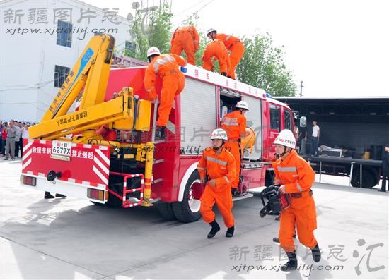 消防救援人员迅速出动,并携带救援设备进行“施救”。