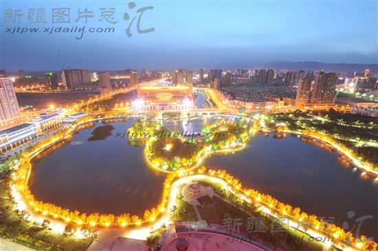关键字:新疆库尔勒市 三河贯通工程 城市景观 夜景