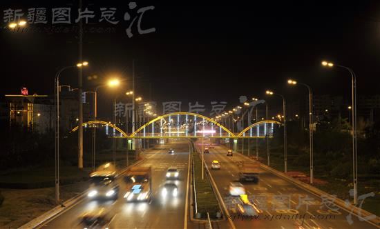 2011年8月13日晚,乌鲁木齐市河滩快速路景观。
