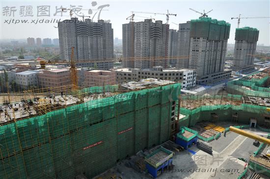 2014年5月19日,在建的乌鲁木齐市八道湾春和怡苑廉租房住宅小区一期和三期建设工地。目前,我区各地保障性住房建设已全部开工复工。