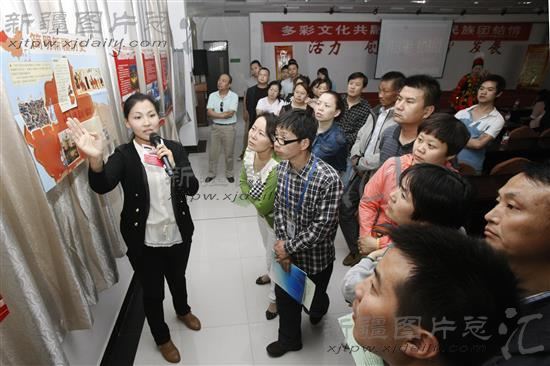 当日,该社区准备了百余份关于新疆“三史”、新疆少数民族文化等相关内容的挂画,结合乌市党校老师的讲解,让辖区企业职工了解新疆,催进民族团结。