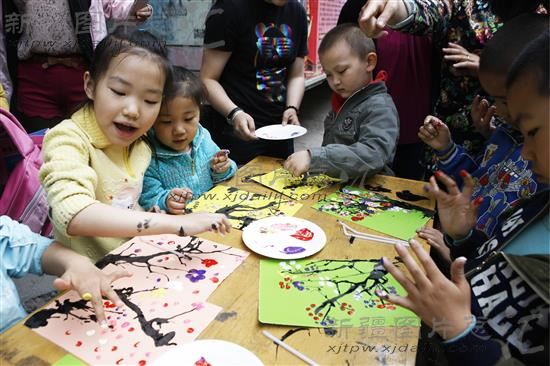 2014年5月21日,孩子们在做“吹画”。