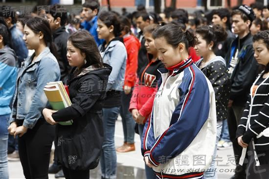 2014年5月23日,乌鲁木齐职业大学200多名师生,对乌鲁木齐“5.22”严重暴力恐怖案件中的遇难人员默哀。