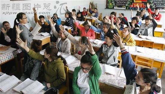 2014年5月23日,在乌鲁木齐职业大学汉语教学部2013级预科班,大学生在上课。