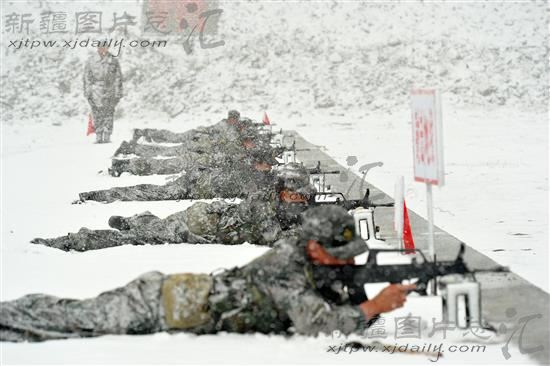当日,新疆哈密北部山区突降大雪,哈密军分区2014年岗位练兵比武竞赛仍按期进行,在恶劣天气中,官兵们顶风冒雪,坚持进行射击考核,提高了部队在突发恶劣气候下的作战能力,确保部队在任何时候拉得出、跟得上、打得赢。