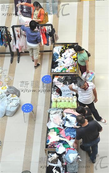 2014年5月26日,顾客在乌鲁木齐德汇火车头儿童大世界挑选服装。