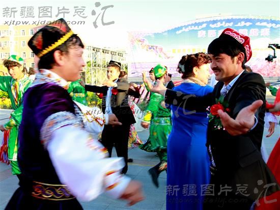 2014年5月24日下午,维吾尔族新人与演员一同跳起麦西来甫。