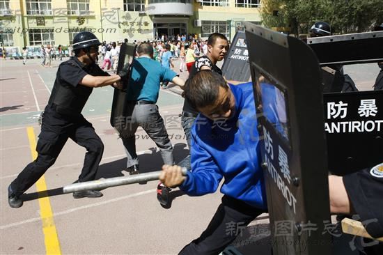 2014年5月27日,乌鲁木齐市第三小学举行安保演练。