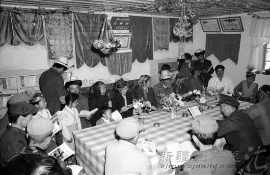 新源县阿克托汗二村村办阅览室丰富了村民文化生活(摄于1987年)。