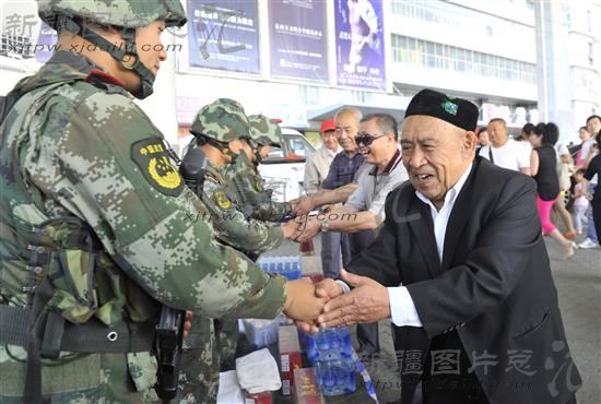 2014年5月28日,乌鲁木齐市炉院街片区管委会棉花南街社区居民看望慰问武警官兵。
