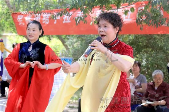 2014年5月29日,哈密市新市区阳光社区的居民在演唱歌曲。
