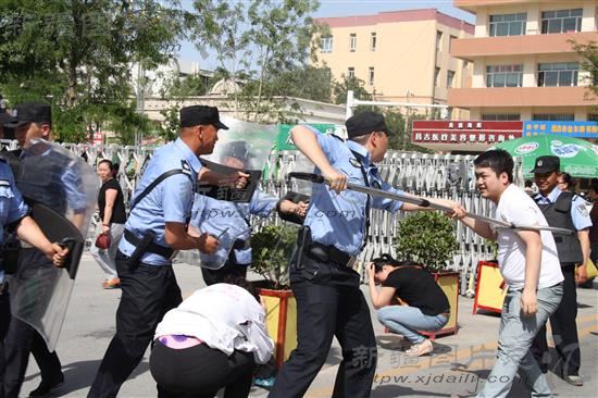 2014年5月29日,昌吉回族自治州人民医院开展应对暴力恐怖事件应急演练,60名医护人员参加了演练。