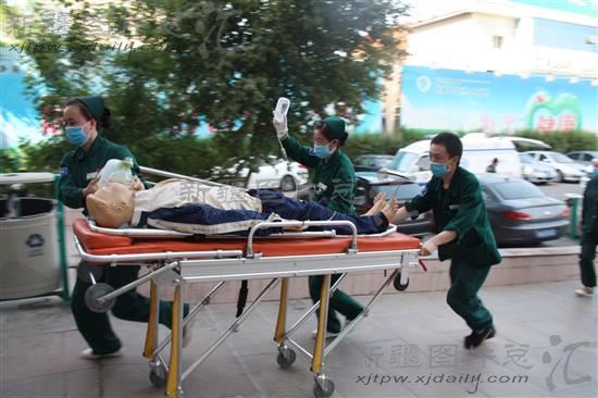 2014年5月29日,昌吉回族自治州人民医院开展应对暴力恐怖事件应急演练,60名医护人员参加了演练。