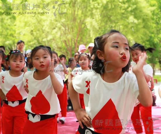 2014年5月29日,兵团第十三师红星二场爱心幼儿园的小朋友在表演舞蹈。