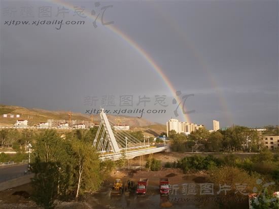 2014年5月30日,在阿勒泰市区出现双彩虹。