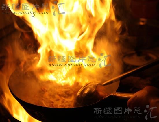 热合曼开始炒菜,颠勺、过油,一气呵成。