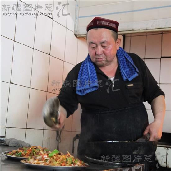 笔者有两次下午八点半前去品尝阿不都的拉条子,都被告知没有面了。在新疆,这个时间应该是饭馆最热闹的时候,特别是在夏季。和笔者一样专门来品尝阿不都的拉条子的客人半开玩笑半埋怨地问:“为什么不多准备点面?”