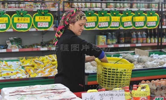 2014年6月2日,乌鲁木齐市水磨沟区苇湖梁片区新光社区蔬菜副食品直销点,居民在选购果蔬。