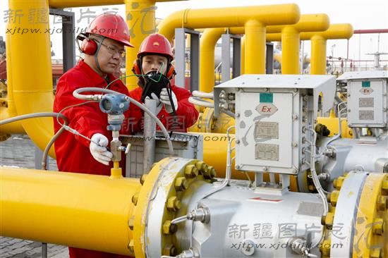 2013年11月28日,在中国石油西部管道公司乌鲁木齐输油气分公司王家沟输气末站,工作人员在进行输送气体调节压力作业。据了解,今冬明春,乌鲁木齐市用气需求缺口达4.85亿方。该公司按照“以供定需、量入为出”和“保民用、保公用、保重点”原则,压缩中石油企业自身用气需求,优先满足城市燃气供暖、百姓生活用气等需求。