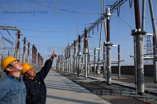 2013年11月5日,220千伏博乐变电站内,工作人员对设备进行巡视检查。为确保博州重点项目和新型工业发展的用电需求,国家电网博尔塔拉蒙古自治州供电公司加紧实施电网重点项目建设提速工程。截至目前,已累计完成工程投资11262.94万元,新开工110千伏线路长度23.8千米,变电容量17万千伏安,助力全州经济跨越发展。