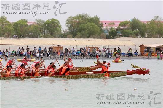 新疆金沙滩端午节举行龙舟赛