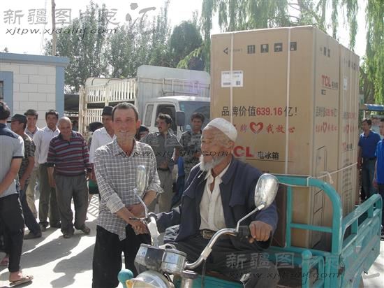 2014年5月28日,贫困群众领到电冰箱。