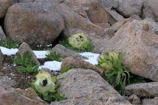 盛开在喀尔里克冰川脚下的雪莲花