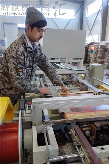 2012年4月30日,接受培训后的农民玉素甫江·阿克丹木在阳光陶瓷厂忙碌着。伊宁县农村富余劳动力大培训提高了农民就业意识和就业技能。