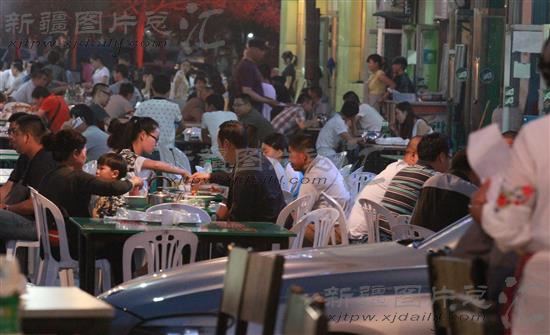 进入夏季,哈密市的夜市逐渐红火,市民纷纷走进夜市,纳凉消遣,品尝美食。