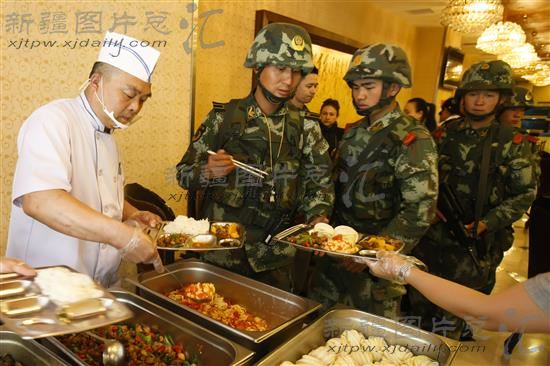 2014年6月7日,在乌鲁木齐市黑龙江路一餐馆内,自治区道路运输管理局在为在乌鲁木齐市第五中学考点周边巡防的人员准备好了午餐。