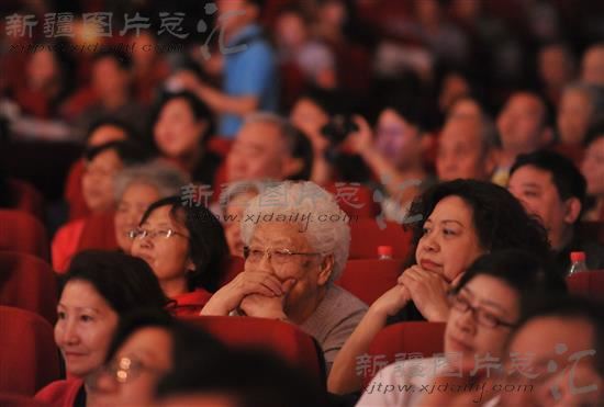 6月8日晚,观众在新疆人民会堂观看国家京剧院名家名段演唱会。