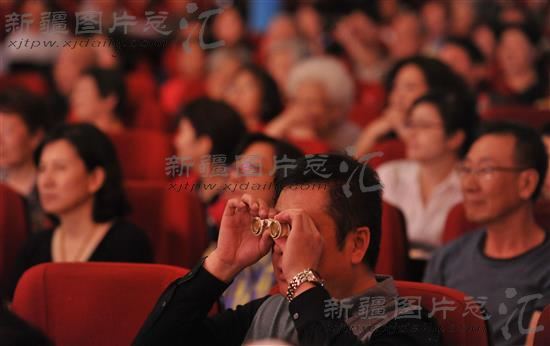 6月8日晚,观众在新疆人民会堂观看国家京剧院名家名段演唱会。