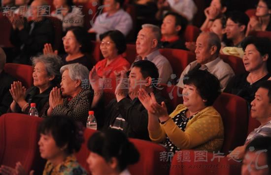 6月8日晚,观众在新疆人民会堂观看国家京剧院名家名段演唱会。
