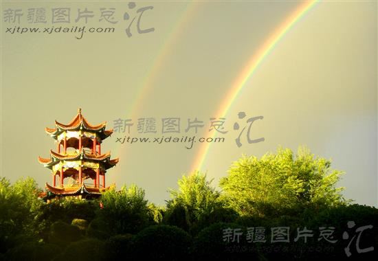 2014年6月8日,裕民县出现双彩虹美景。