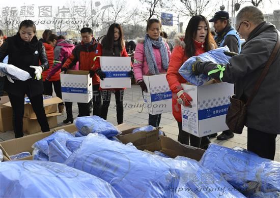 2013年12月8日,志愿者在装运“温暖包”。当日,2013年壹基金温暖包新疆发放活动启动仪式在乌鲁木齐举行,4000个社会各界爱心人士捐助的“温暖包”将在月底之前由各地志愿者团队发放到孩子们手中,让他们在新年来临之际,穿上温暖舒适的新衣。预计12月9日,所有温暖包将在乌鲁木齐分装完毕,将在15日之前分发到全疆60多个县市和团场。