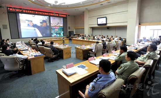 2014年6月8日,“天山——20140”综合反恐演习在克拉玛依市举行。当日,自治区反恐工作领导小组全体成员在自治公安厅指挥中心通过电子大屏观看演习内容,并举行自治区反恐工作领导小组第一次全体会议。