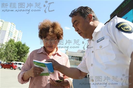 2014年6月10日,博尔塔拉蒙古自治州食品药监局工作人员在向市民发放食品安全手册。