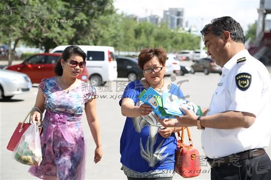 2014年6月10日,博尔塔拉蒙古自治州食品药监局工作人员在向市民发放食品安全手册。