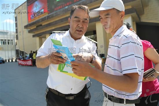 2014年6月10日,博尔塔拉蒙古自治州食品药监局工作人员在向市民发放食品安全手册。
