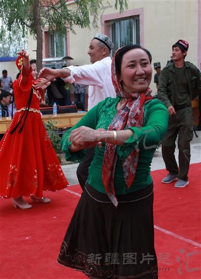 2014年6月9日,温泉县哈日布呼镇玉祖尔村的村民跳起欢快的舞蹈。
