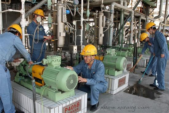 2014年6月11日,独山子石化公司乙烯厂开展“设备创完好,党员作表率”义务劳动活动,各车间组织全体党员和入党积极分子对装置区内的设备、管线、仪表等进行维护。