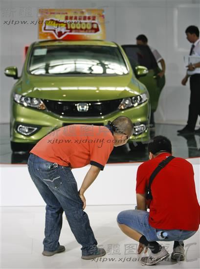 2014年6月12日,在新疆国际会展中心,市民在参观车展。