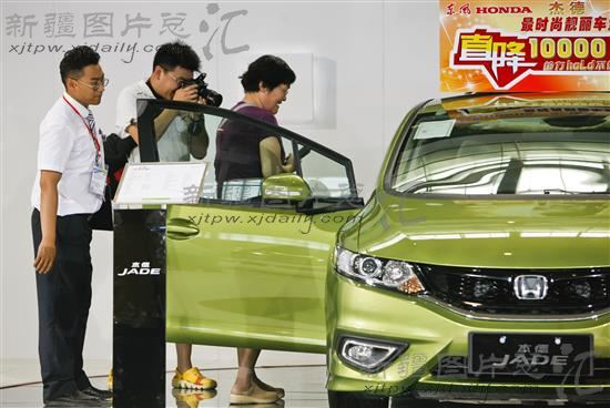 2014年6月12日,在新疆国际会展中心,市民在参观车展。