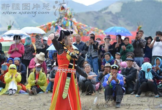 当日,巴里坤哈萨克自治县的蒙古族群众迎来一年一度的敖包节,身着节日盛装的蒙古族群众按照传统的方式祭祀敖包,观看表演文艺节目。
