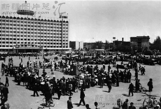 1987年,宽阔的人民广场,遍布文化集市的各种活动服务点。沈桥摄