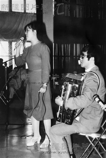 新婚夫妇在婚礼上表演节目(摄于1987年)。